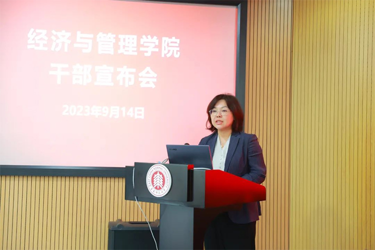 2023年9月14日下午,华东师范大学经济与管理学院干部宣布会在普陀校区图书馆报告厅举行。华东师范大学党委常委、副校长顾红亮、党委组织部部长朱军文、学院班子成员及教工代表参加会议。会议由朱军文主持。