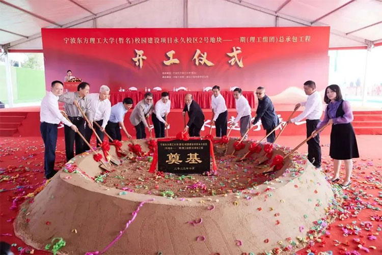 10月12日,宁波东方理工大学(暂名)校园建设项目永久校区2号地块一期(理工组团)总承包工程开工仪式在宁波举行。宁波市镇海区委副书记、代区长童华强;宁波东方理工大学(暂名)校长陈十一,常务副校长兼教务长张东晓,副校长郑春苗、何亦武,校长特别顾问祝京旭等领导班子参加仪式。