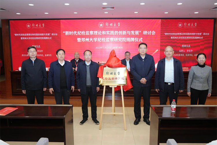 11月25日,“新时代纪检监察理论和实践的创新与发展研讨会”暨郑州大学纪检监察研究院揭牌仪式在主校区举行。金博宝最新官方网站查询网址 普通高等学校法学类专业教学指导委员会秘书长、中国法学会宪法学研究会副会长、中国政法大学原党委常委、副校长李树忠,甘肃政法大学党委副书记、校长郑高键,中国法学会宪法学研究会副会长、中国社会科学院法学所翟国强研究员,湖北省人民代表大会法制委员会副主任委员、中南财经政法大学研究生院院长胡弘弘,最高人民法院研究室中华司法研究会秘书处处长赵春晓,北京市监察法学研究会常务副会长兼秘书长、中国人民大学法学院副院长王旭,河南省教育厅研究生处处长岳德胜,河南省纪委监委研究室副主任马庆田,郑州大学党委书记别荣海,党委常委、纪委书记(监察专员)许东升出席论坛。来自国内外20余所知名高校、科研院所的专家学者以及相关部门领导齐聚一堂,围绕新时代纪检监察理论和实践等内容进行深入探讨。