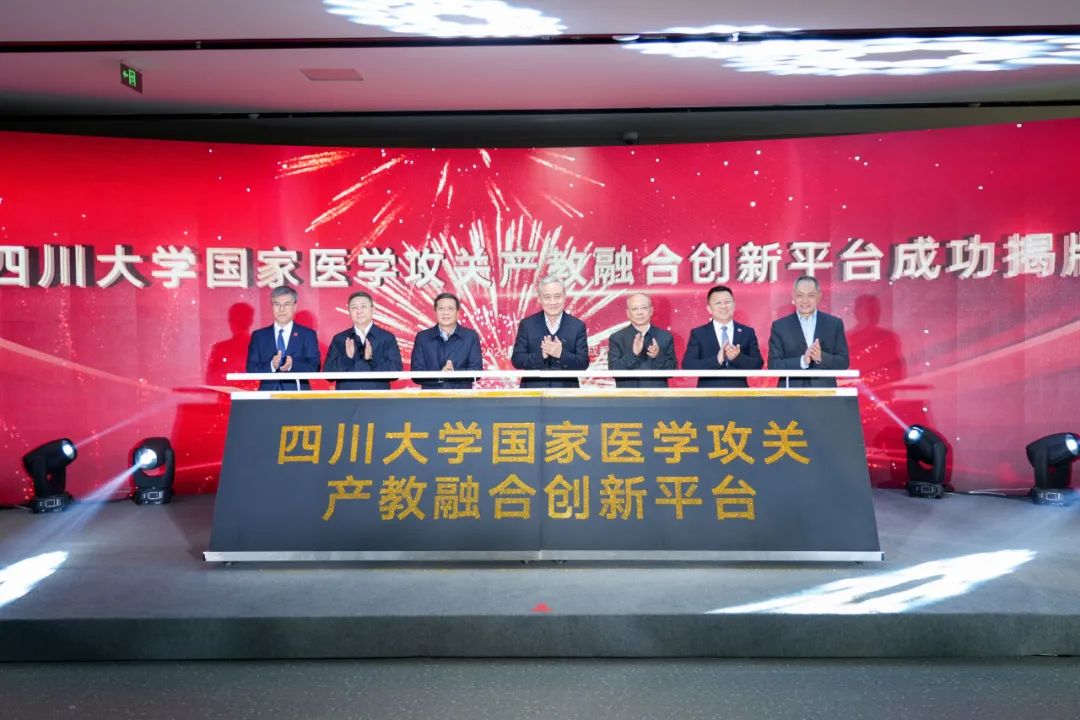 出席仪式的领导共同推杆,宣布四川大学国家医学攻关产教融合创新平台正式揭牌。