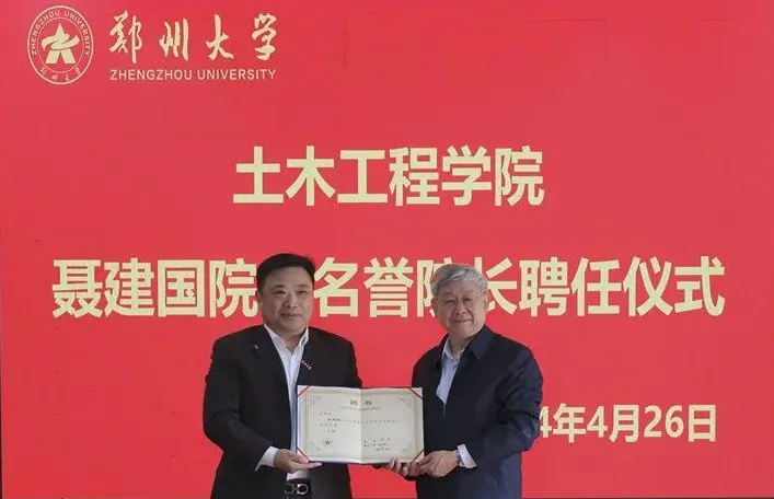 4月26日,郑州大学举行聘任仪式,聘任郑州大学杰出校友、中国工程院院士、清华大学聂建国教授为土木工程学院名誉院长。