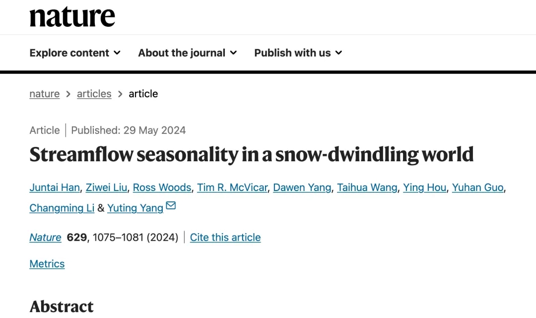 北京时间5月30日,水利水电工程系杨雨亭团队在《自然》(Nature)网站在线发表题为《雪量减少世界中的径流季节性》(Streamflow seasonality in a snow-dwindling world)的研究论文,系统地揭示了河川径流过程对降雪变化的复杂响应机理,阐明了冬季降雪减少对径流季节性的影响规律。