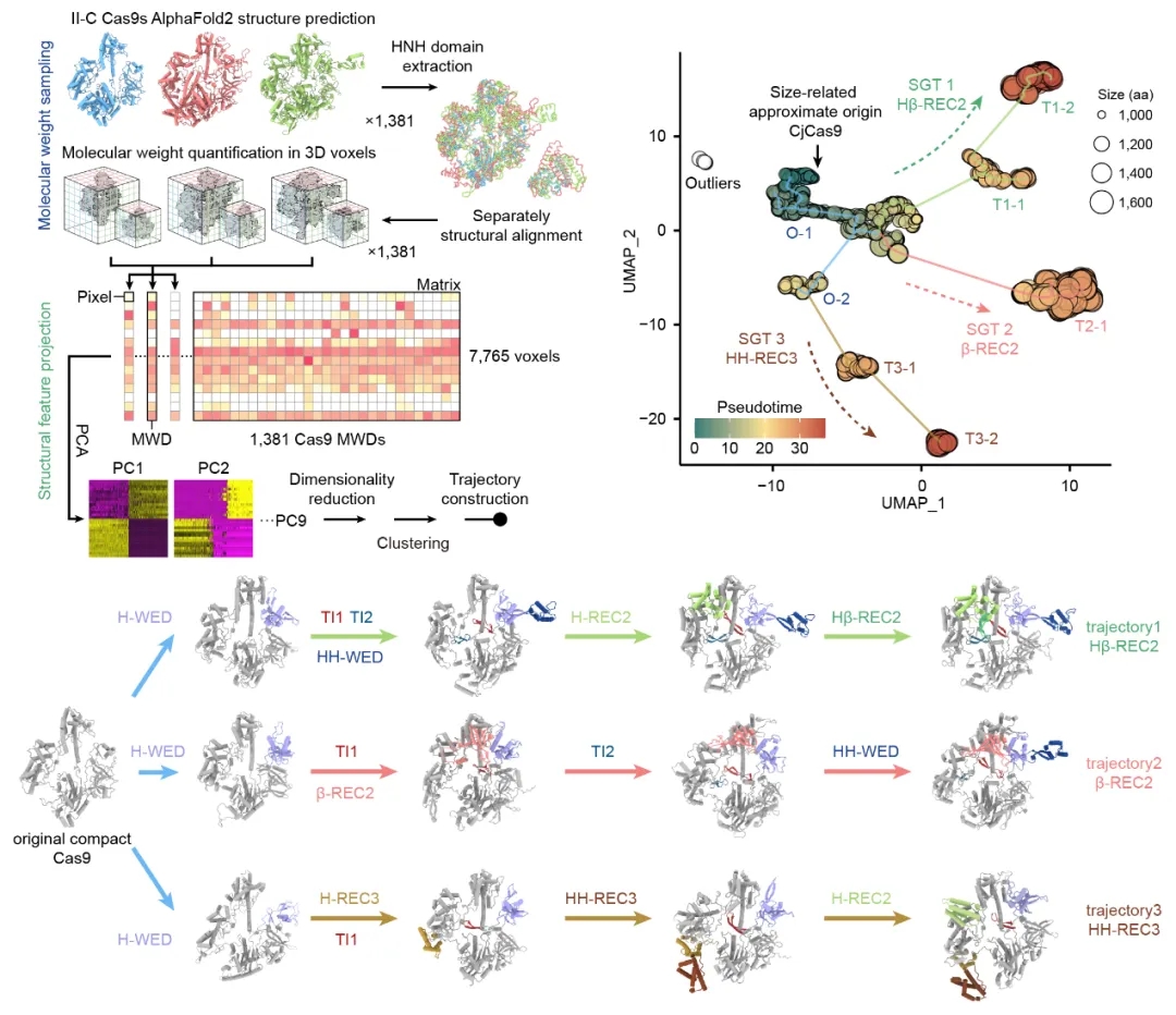 结构生长轨迹分析方法(左)和II-C型Cas9的生长轨迹图(右)
