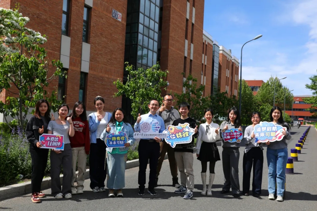 刘俊杰副教授(右)和学生们在赏析结构模型