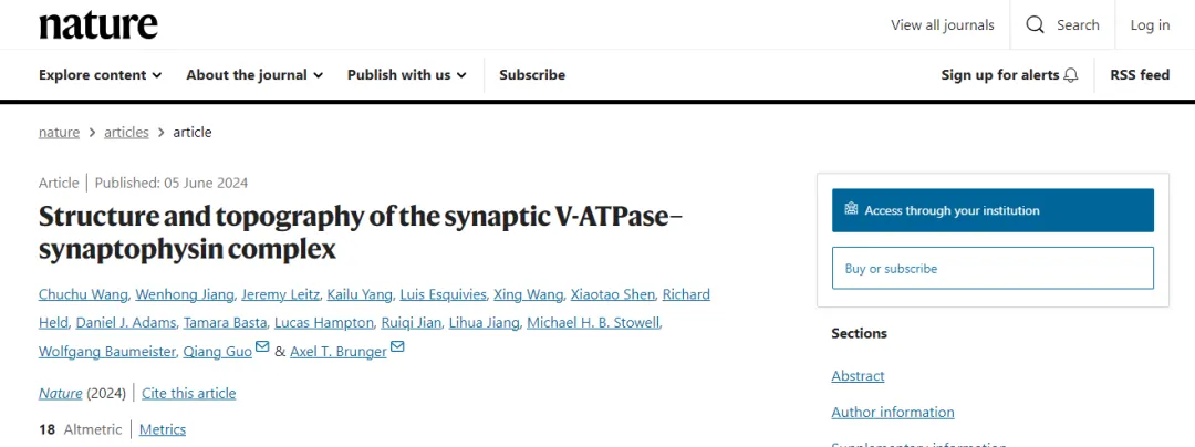 6月5日,北京大学郭强课题组和斯坦福大学Axel T. Brunger课题组在Nature在线发表了题为“Structure and topography of the synaptic V-ATPase–synaptophysin complex”的研究论文。