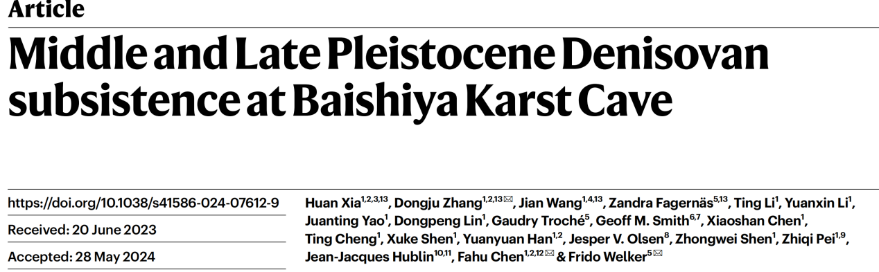 Xia, H., Zhang, D. J. et al., 2024. Middle and Late Pleistocene Denisovan subsistence at Baishiya Karst Cave. Nature, https://doi.org/10.1038/s41586-024-07612-9.