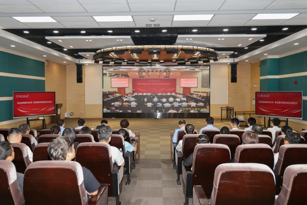 会前,播放了《师之道——北京师范大学深入贯彻落实习近平总书记“四有”好老师重要讲话精神十周年纪实》短片,展示了十年来北师大牢记嘱托,以“四有”首倡之地展现首倡作为,倾心铸就中国教师教育的“珠穆朗玛峰”,领航培养党和人民满意的“四有”好老师的工作成效。
