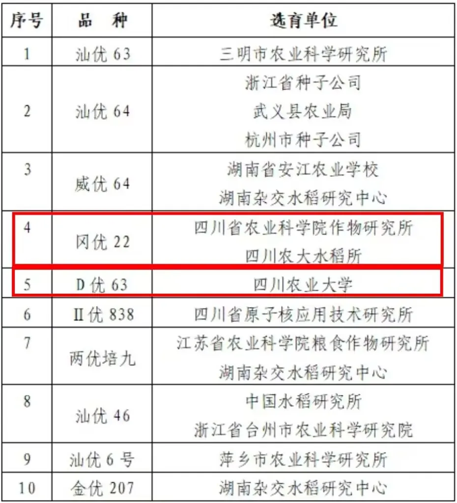 四川农业大学两个品种入选十大杂交水稻荣誉品种!