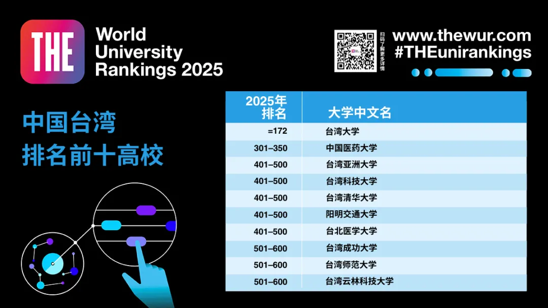 台湾大学保持了其在中国台湾榜首的位置,位列世界并列第172名。