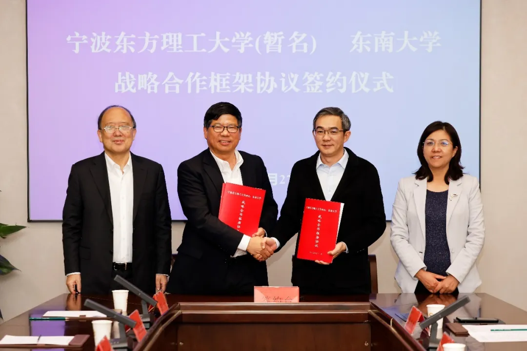 近日,宁波东方理工大学(暂名)与东南大学战略合作框架协议签订仪式在东南大学九龙湖校区举行。双方将秉持优势互补、协同创新、互利共赢的原则,共同服务国家重大战略需求,为推动教育强国建设和创新驱动发展贡献力量。中国科学院院士、东方理工校长陈十一,中国科学院院士、东南大学校长黄如出席仪式并讲话,东方理工副校长郑春苗与东南大学副校长钟文琪代表双方签约。