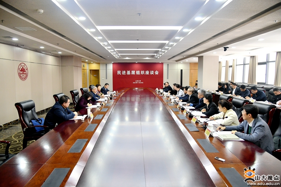 山东大学特聘教授、教育高等研究院院长徐斌艳汇报了教育高等研究院建设情况。民进山东省委会副主委、山东大学基层委员会主委陈代荣作工作汇报。“国优计划”师生代表、山大民进会员代表分别在两个座谈会上作交流发言。