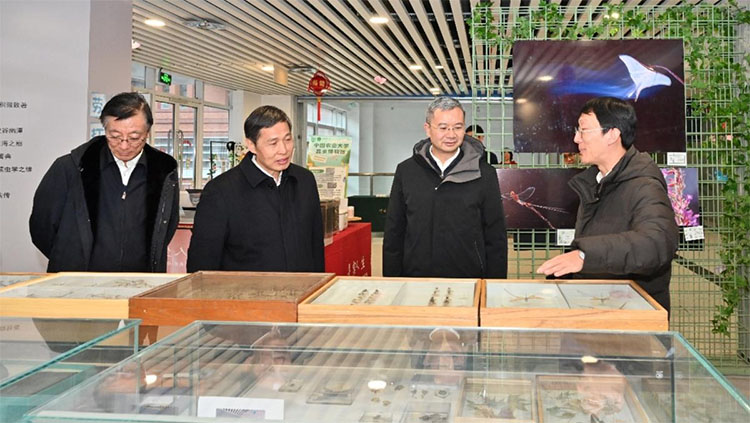 熊四皓一行首先前往档案与校史馆,了解中国农业大学办学历史情况。在新植保楼听取学校科技自立自强、服务乡村振兴、科技小院建设等情况汇报。在生命科学研究中心调研植物抗逆高效全国重点实验室,并听取实验室工作汇报。随后前往昆虫博物馆、北京市动物医学教学中心和动物医学标本馆、饲料博物馆,调研植物保护、兽医学、畜牧学等学科建设等情况。