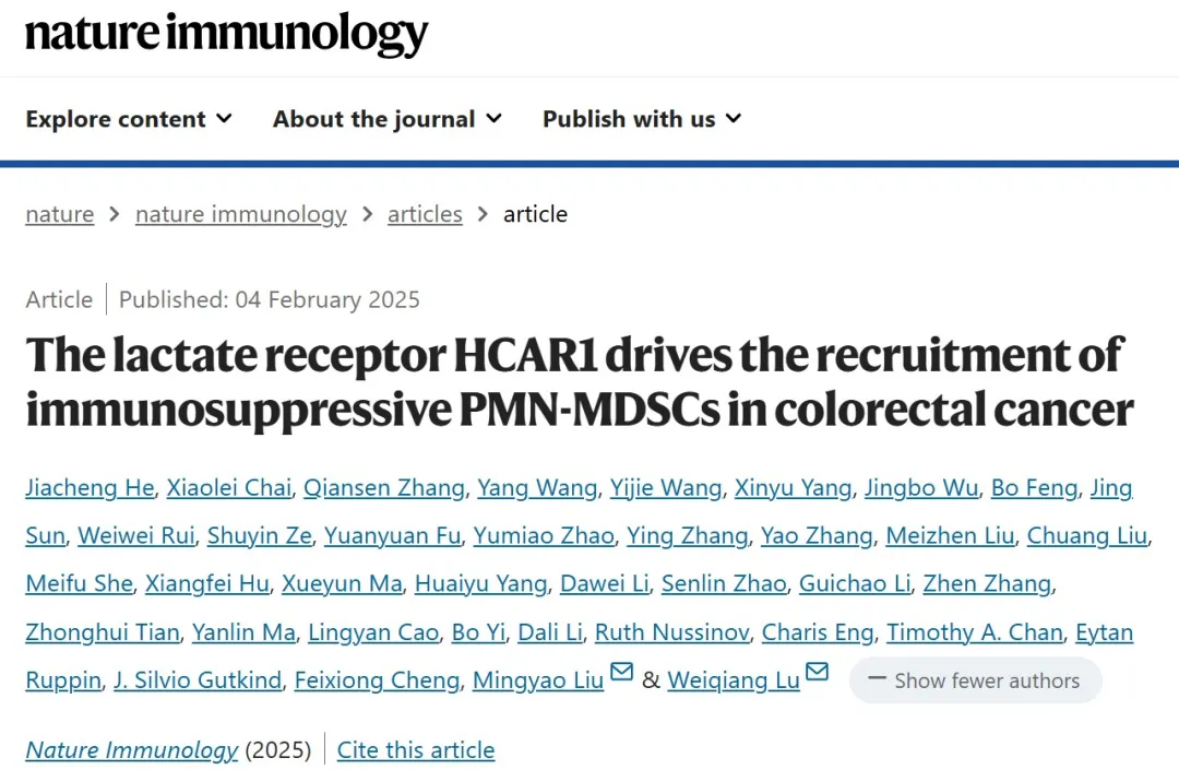 华东师大研究团队聚焦乳酸的信号分子属性,揭示GPCR介导的乳酸信号在肿瘤免疫调控中的新功能和新机制,并据此提出乳酸受体HCAR1是新型的代谢免疫检查点,为肿瘤免疫疗法开发提供了新思路。