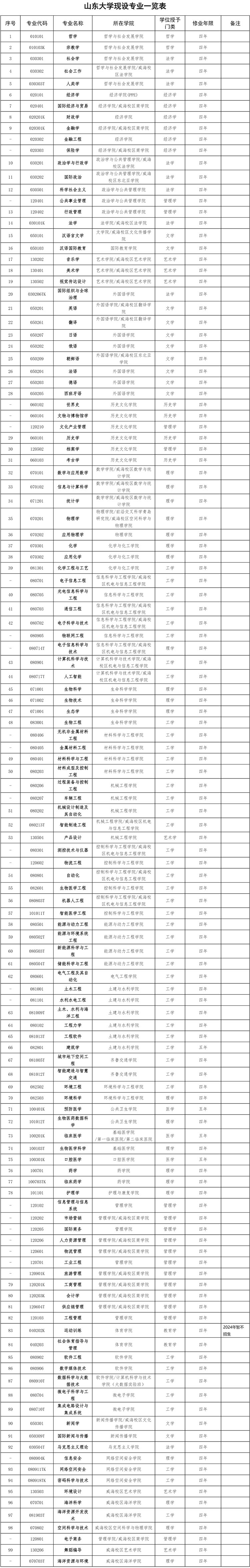 2月16日,山东大学发布2023年9月至2024年8月本科专业设置及调整情况,学校现有本科专业126个,当前在招专业99个。金融工程、世界史、土木工程等27个专业暂停招生(序号标为“-”的为停招专业),撤销书法学、高分子材料与工程、包装工程、材料物理、材料化学、工业设计、交通运输、资源循环科学与工程、制药工程、电子商务(工学),新增工程软件、运动训练2个新专业。统计时点为2023-2024学年(即2023年9月1日至2024年8月31日)。