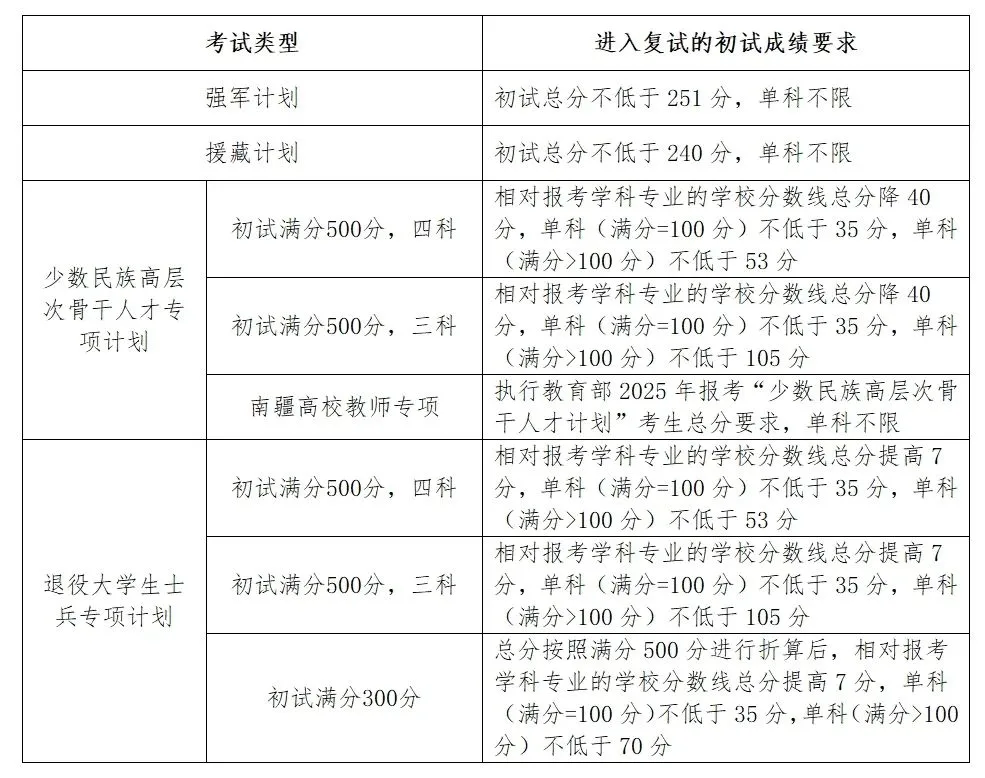 2025年吉林大学硕士研究生招生考试考生进入复试的初试成绩基本要求
