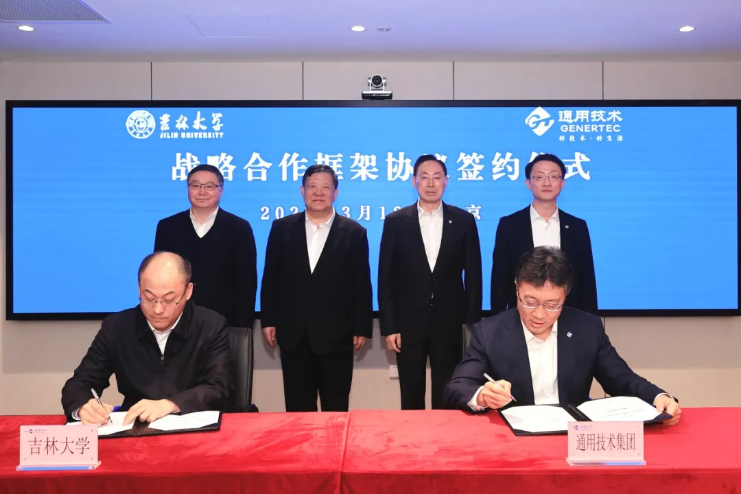 签约仪式上,在姜治莹、于旭波等领导的见证下,吉林大学党委常委、副校长,中国科学院院士马琰铭与中国通用技术集团党组成员、副总经理贾大风代表双方签订《战略合作框架协议》。双方本着“优势互补、资源共享、务实高效、合作共赢”的原则,共同组建通用技术集团-吉林大学联合研究院,充分发挥吉林大学的科研与人才优势和通用技术集团的产业和市场优势,在数控机床、汽车制造、超精密光学、工程机械、航空航天和医疗健康等方面深入合作,积极搭建校企导师交流平台,全面提升工程硕博士培养质量,促进吉林大学学科发展和成果转化,提升通用技术集团自主创新能力和核心竞争力,助力吉林大学建设世界一流大学、通用技术集团建设世界一流企业,在推动高质量发展中扎实服务中国式现代化建设。