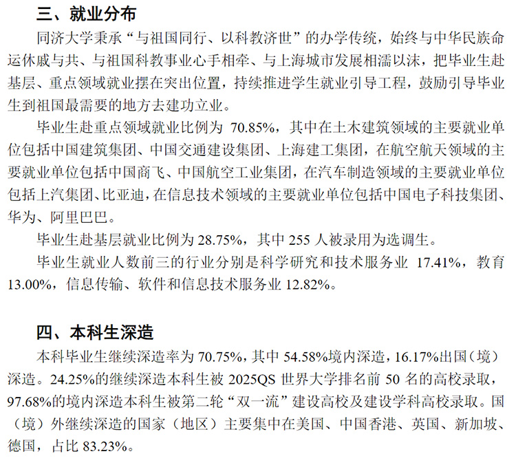 同济大学2024届本科毕业生就业质量报告:本科毕业生深造率达70.75%