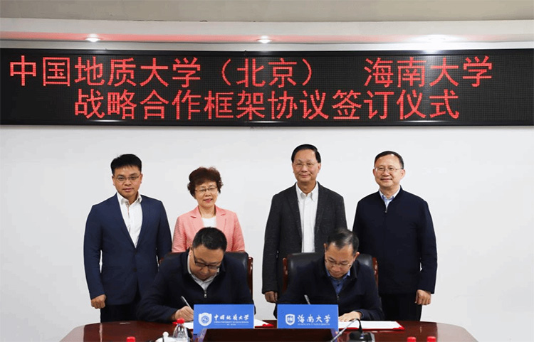 会上,武雄、李步洪代表两校签订了《中国地质大学(北京)、海南大学战略合作框架协议》,雷涯邻、吴怀春与符宣国、骆清铭证签。
