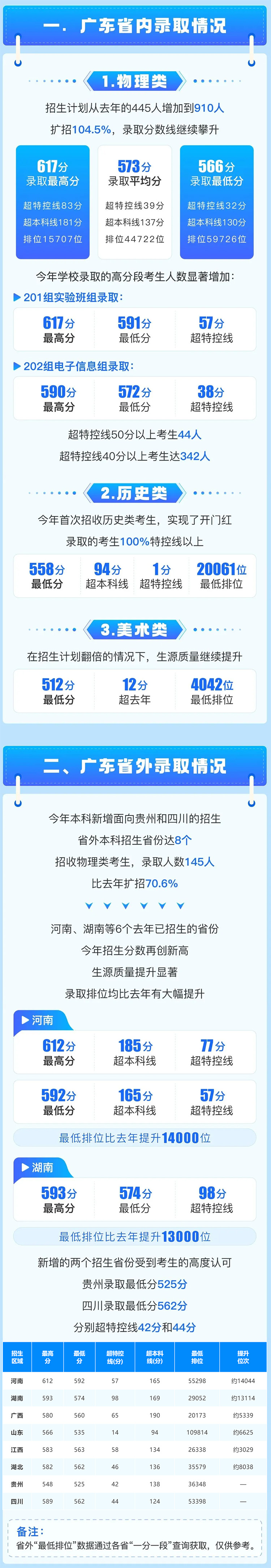 今年深圳职业技术大学夏季高考面向广东、江西、山东、河南、湖北、湖南、广西、四川、贵州9个省(自治区)招生,招生专业24个,录取物理类、历史类、美术类考生1170人。在招生计划翻倍的情况下,考生报考持续火爆,整体生源稳步提升,各省(自治区)生源质量均再创新高,录取考生100%超特控线,高分段人数增加显著,物理类600分以上考生达10人。
