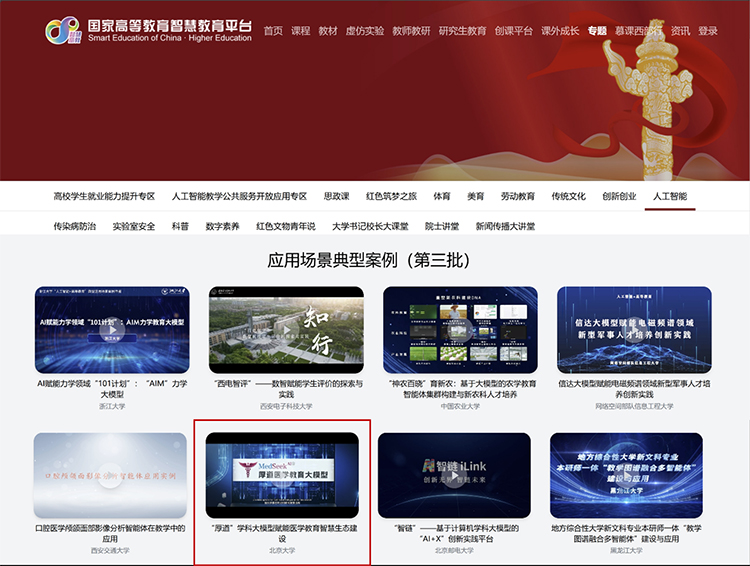 近日,北京大学“厚道”学科大模型赋能医学教育智慧生态建设成功入选金博宝最新官方网站查询网址 第三批“人工智能+188金宝搏beat官网登录 ”应用场景典型案例。厚道(MedSeekAI®)医学教育大模型是专为医学教育设计的垂直领域大模型,由全国医学教育发展中心牵头建设,旨在破解传统医学教育面临的诸多挑战。