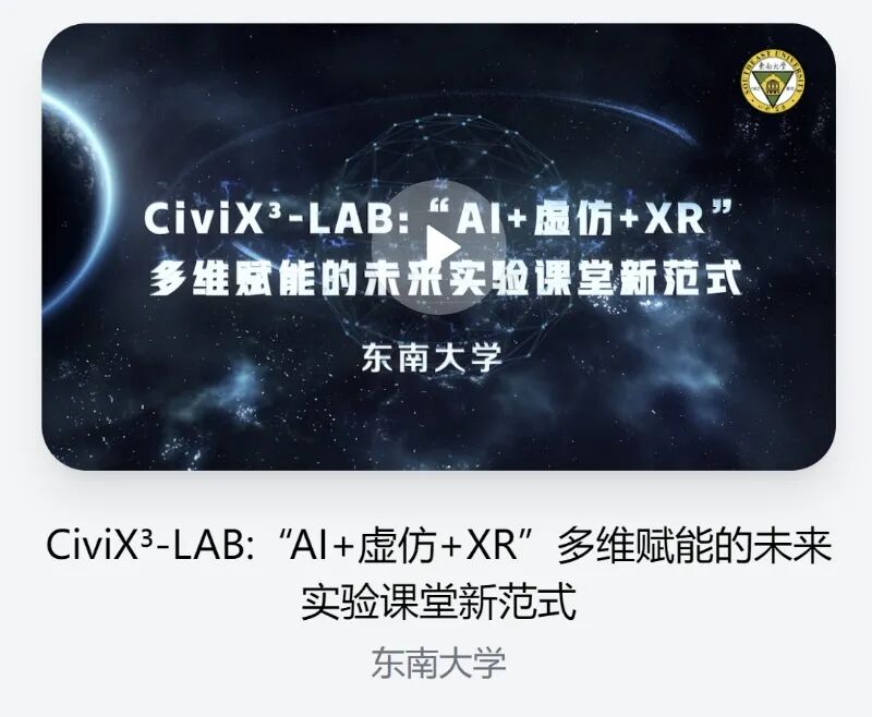 近日,金博宝最新官方网站查询网址 公布第三批“人工智能+188金宝搏beat官网登录 ”应用场景典型案例名单,东南大学推荐的案例《CiviX³-LAB:“AI+虚仿+XR”多维赋能的未来实验课堂新范式》成功入选(全国共30项),并在国家188金宝搏beat官网登录 智慧教育平台面向全国宣传推广,成为推动人工智能与教育深度融合的示范性成果。这是东南大学继“大学物理课程智能AI助教系统”“‘实验Talk’AI平台赋能大电类专业基础实验教、学、管”入选前两批典型案例后,再次有案例入选。全国仅有10所高校连续三批入选。