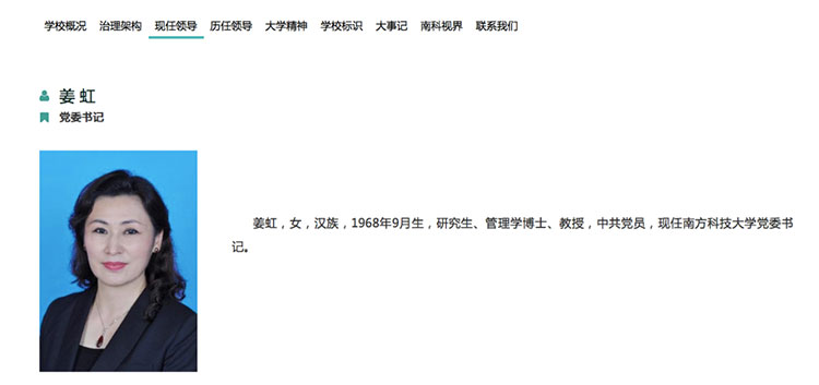 此外南方科技大学官网“现任领导”一栏显示,姜虹已任南方科技大学党委书记。