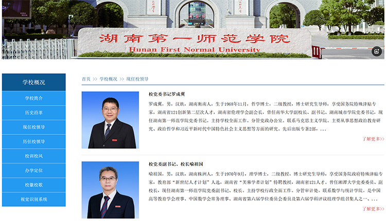 学校官网介绍,喻祖国,男,汉族,湖南株洲人,生于1970年9月,理学博士,二级教授,博士研究生导师,享受国务院政府特殊津贴专家,金博宝最新官方网站查询网址 “新世纪人才计划”人选,湖南省“芙蓉学者计划”特聘教授,湖南省121人才。曾任湘潭大学党委委员、副校长,现任湖南第一师范学院党委副书记、校长。