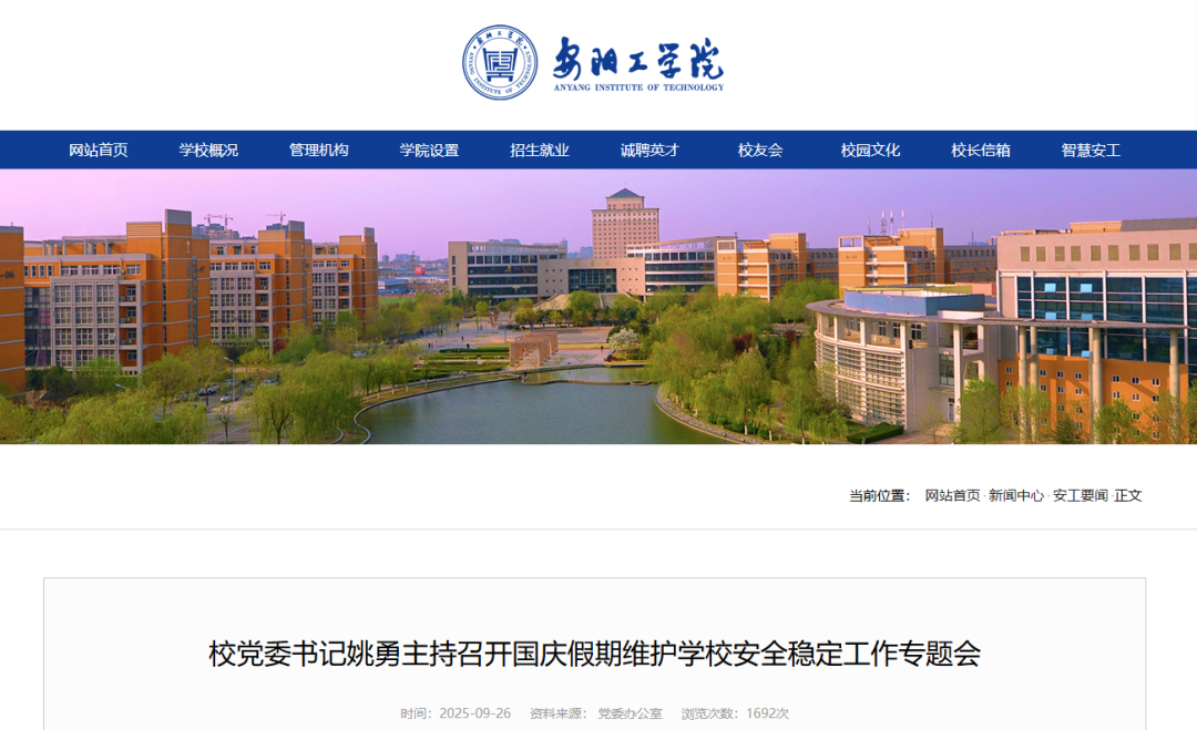 据安阳工学院官网发布的消息,近日校党委书记姚勇主持召开国庆假期维护学校安全稳定工作专题会,该信息表明:姚勇已任安阳工学院党委书记。