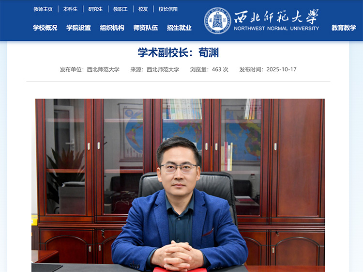 日前,西北师范大学官网“现任领导”一栏更新显示,知名教育学者荀渊已任西北师范大学学术副校长。