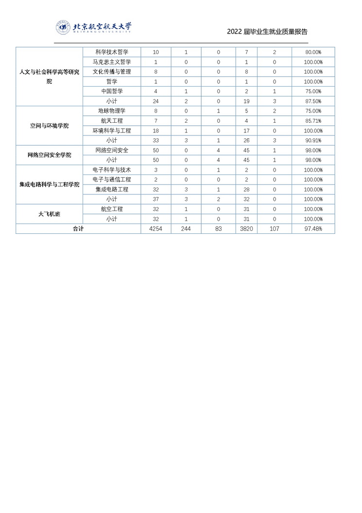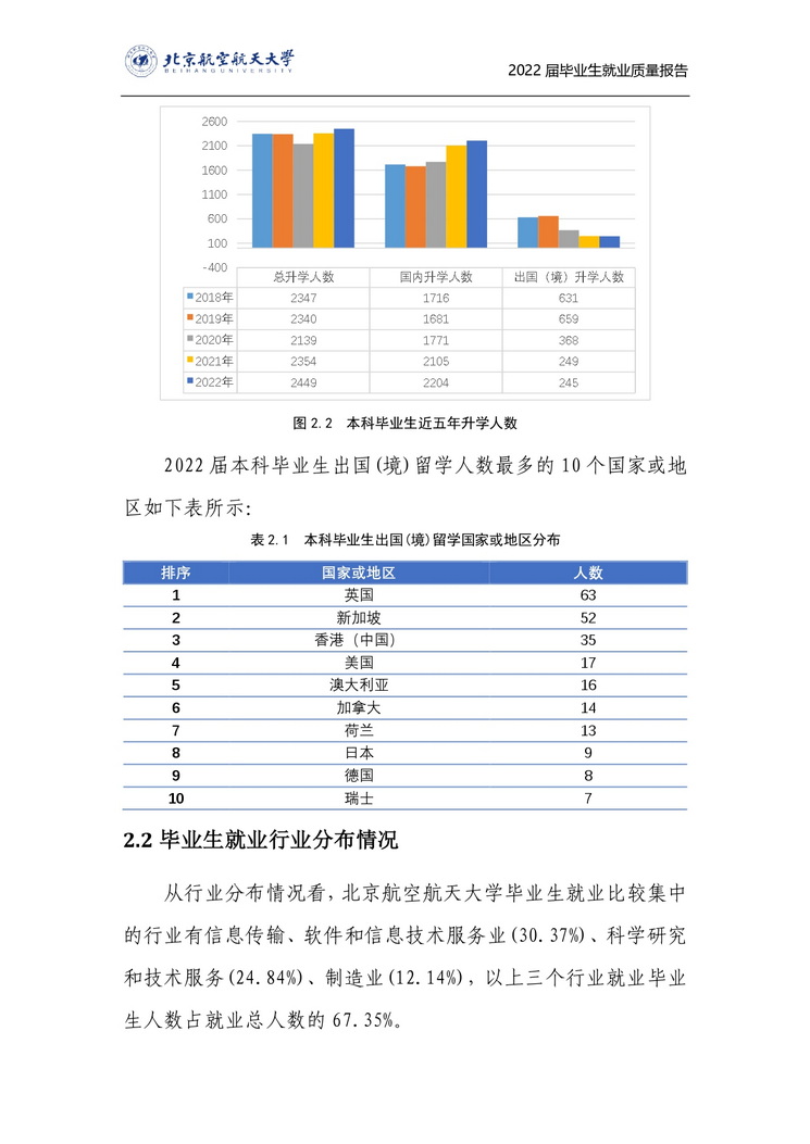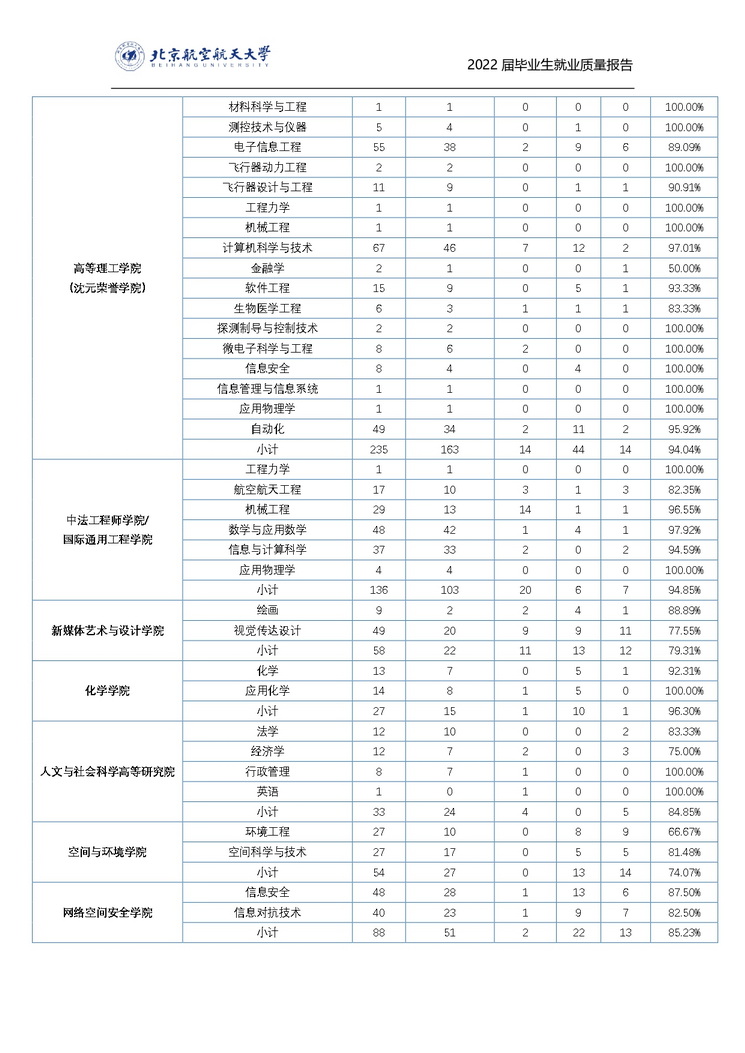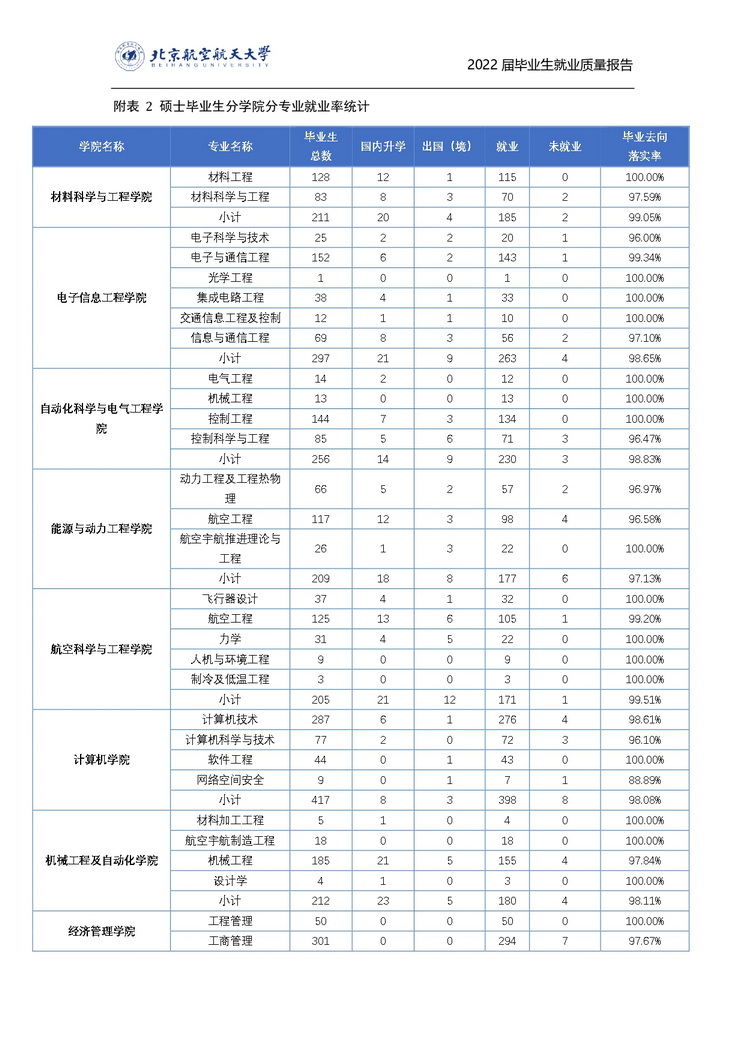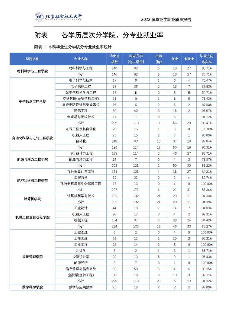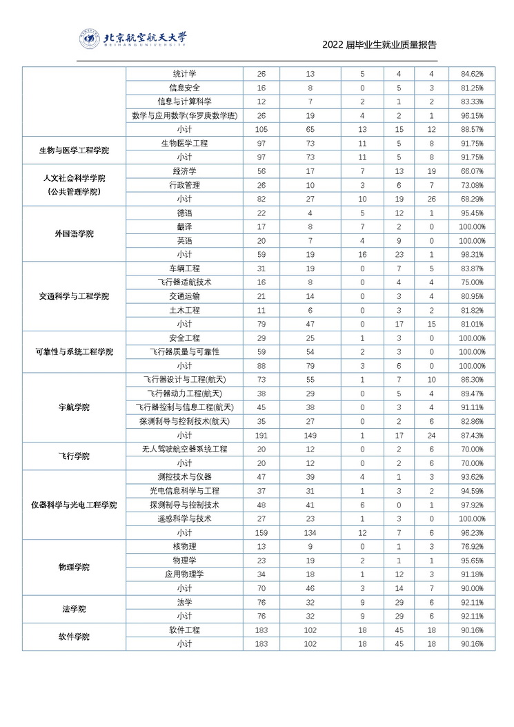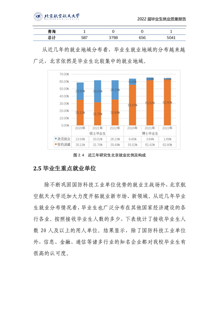 北京航空航天大学2022年毕业生就业质量报告