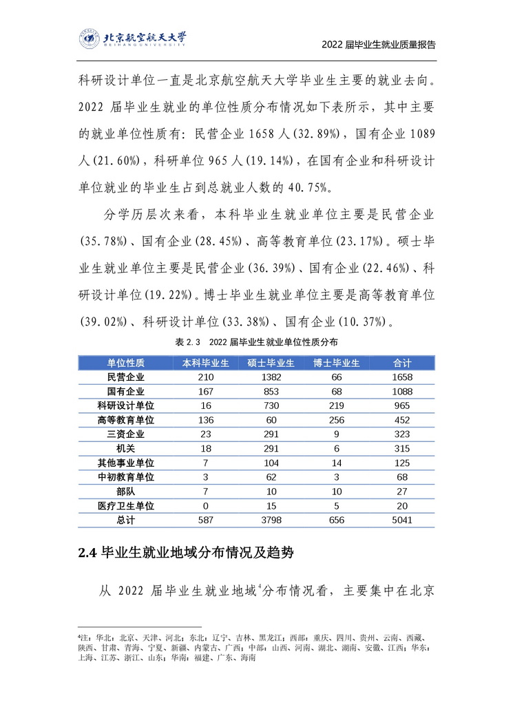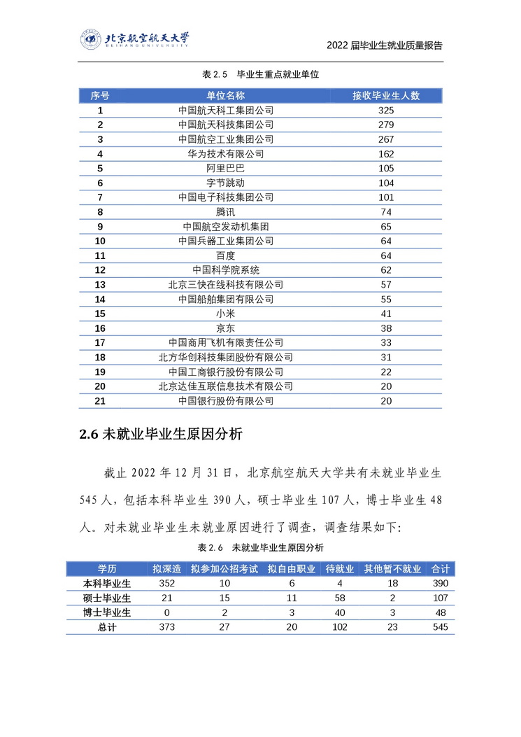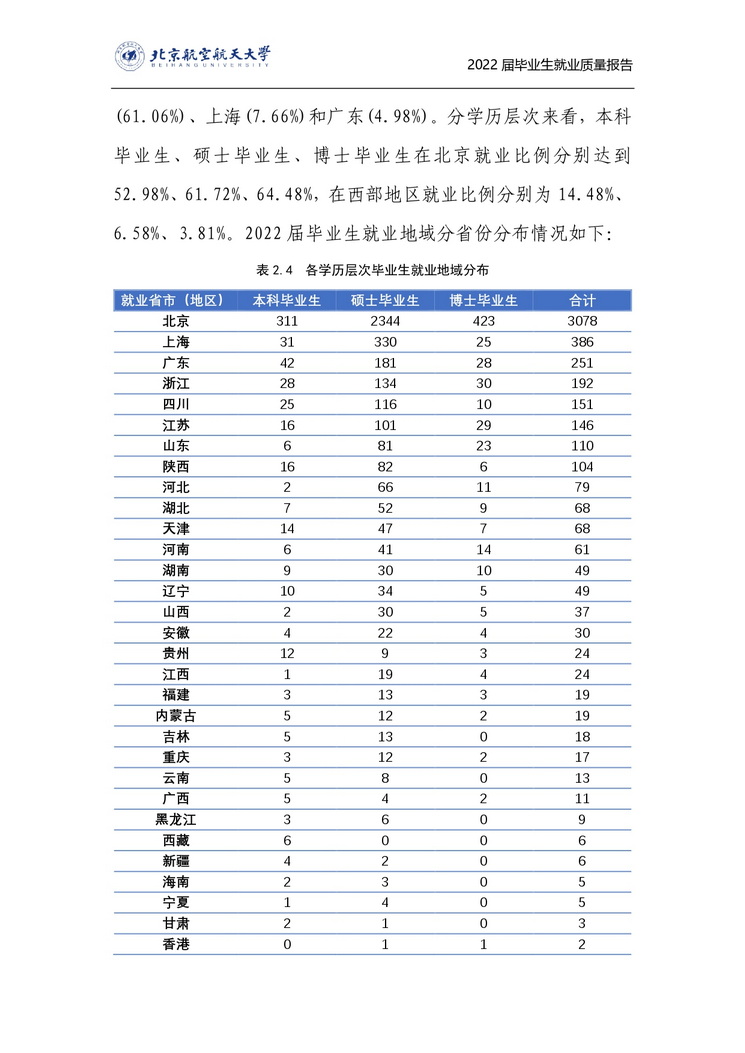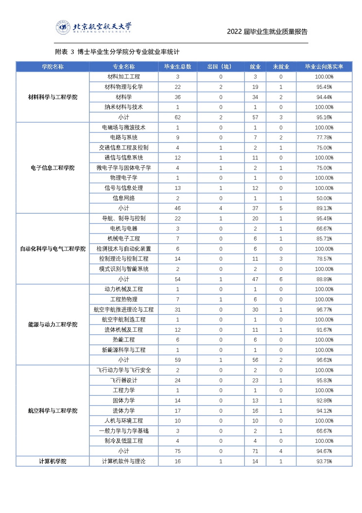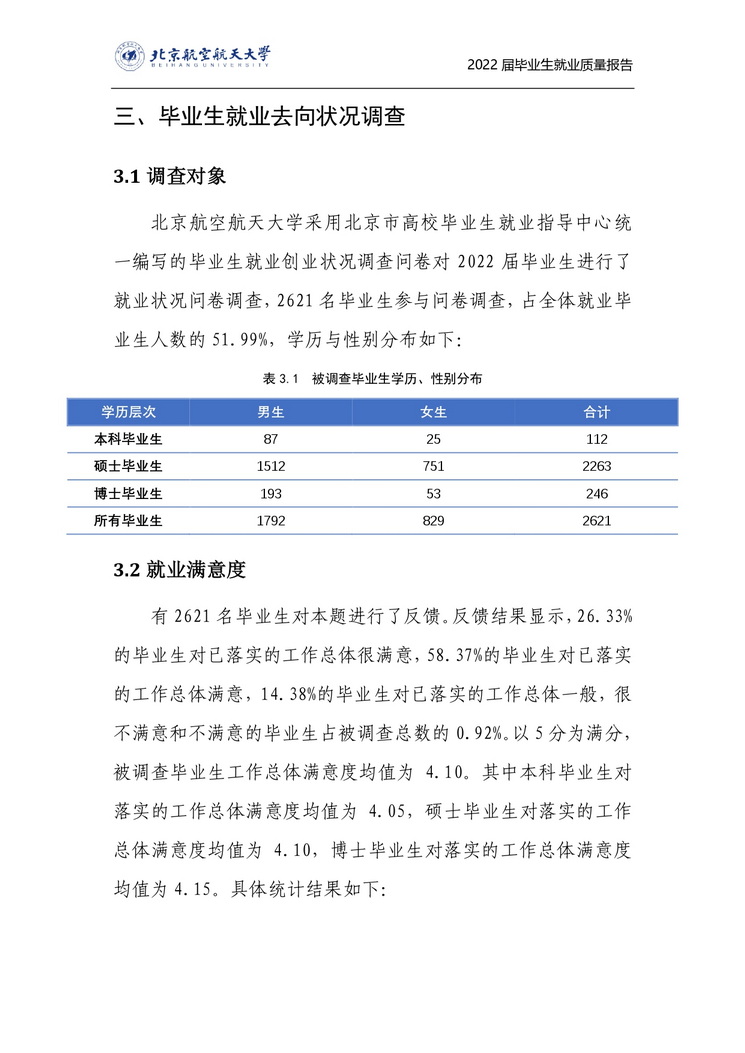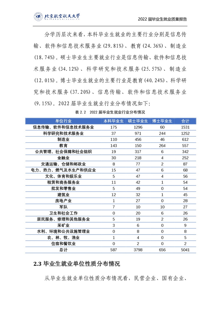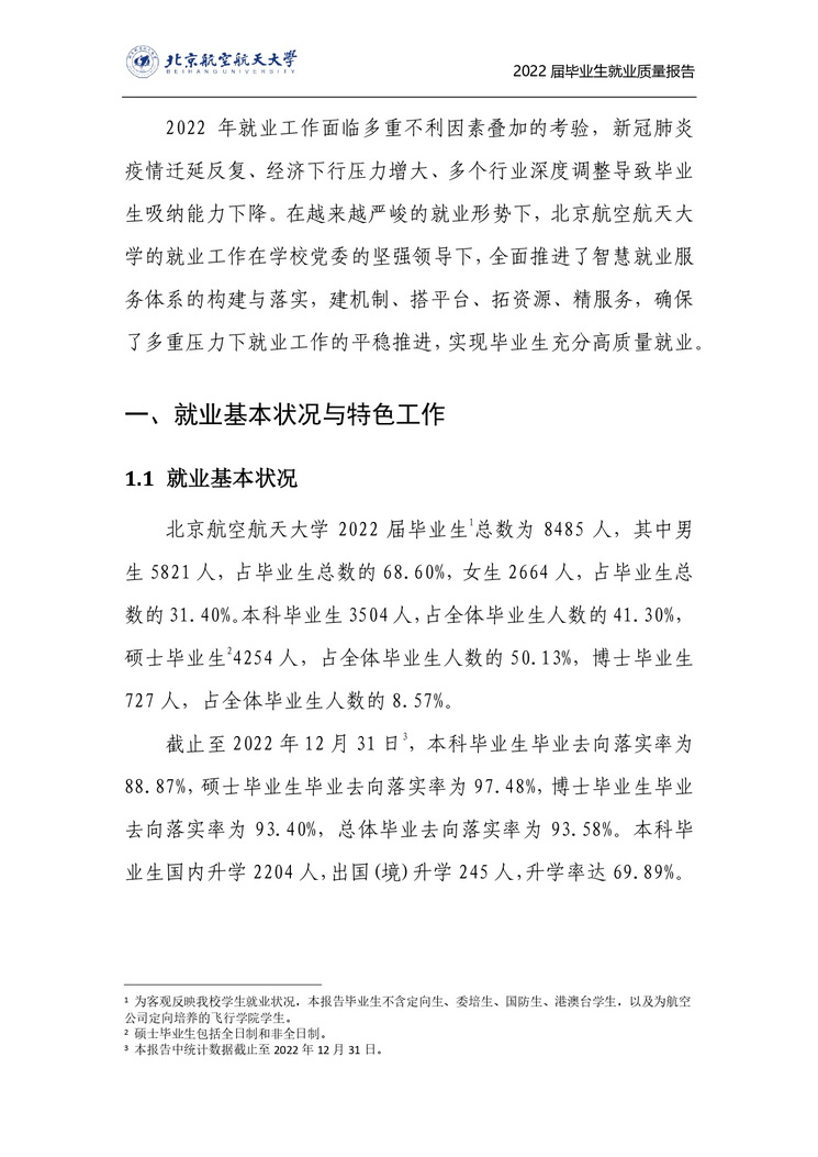 北京航空航天大学2022年毕业生就业质量报告