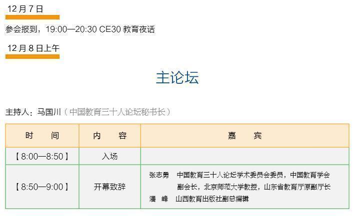 中国教育三十人论坛第六届年会设全体大会和四个分论坛,将发布主题背景研究报告《教育与科技:喜与忧》。在12月7日晚上,将邀请特别嘉宾进行“教育夜话”,分享自己的教育故事。
