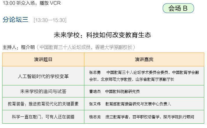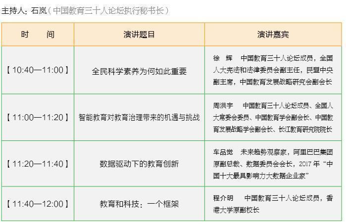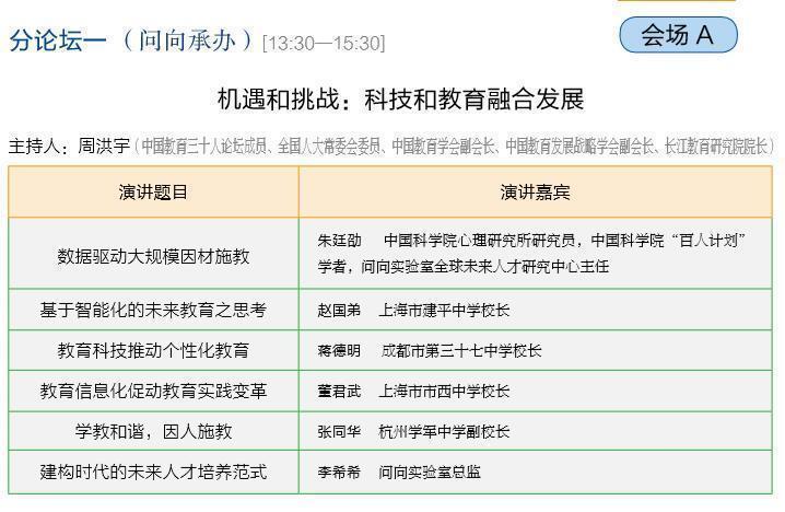 未来趋势观察家、阿里巴巴集团原副总裁车品觉,中国科学院心理研究所研究员、问向实验室全球未来人才研究中心主任朱廷劭等跨界人士也将从实践应用角度展望教育与科技的融合。