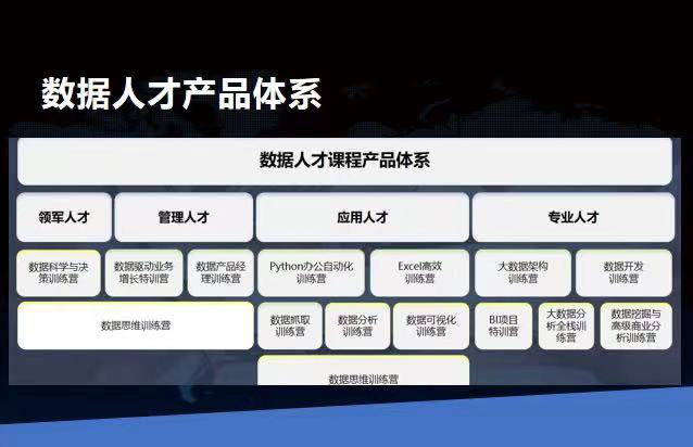 “数据人才训练营”和“智能人才训练营”两款新产品面向企业客户,针对企业数字化人才培养的短板,把企业一线实战场景搬进课堂,从场景中来,到场景中去,打造企业数字化人才“定制培训”模式,为企业配套提供人才培育平台,实现培训和实战的同步接轨。