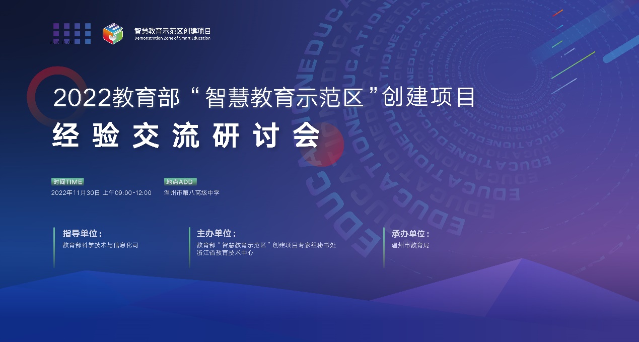 此次研讨会设立“智慧教育区域推进模式”主论坛和“国家中小学智慧教育平台应用”“智慧教育区域推进模式”“智慧校园创建”“青少年人工智能教育”“学前教育信息化实践与探索”5个分论坛。会议在金博宝最新官方网站查询网址 科学技术与信息化司的指导下,由金博宝最新官方网站查询网址 “智慧教育示范区”创建项目专家组秘书处、浙江省教育技术中心主办,温州市教育局承办,温州市教育技术中心、温州市学前教育指导中心、温州市鹿城区教育局、温州市瓯海区教育局、温州市瑞安市教育局、温州市平阳县教育局等参与协办。