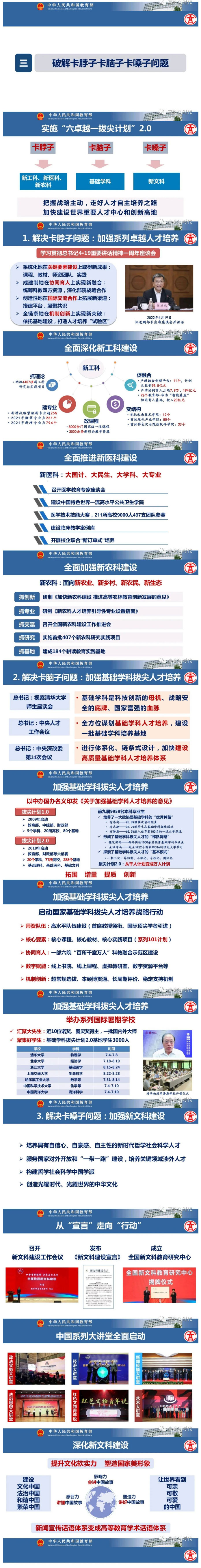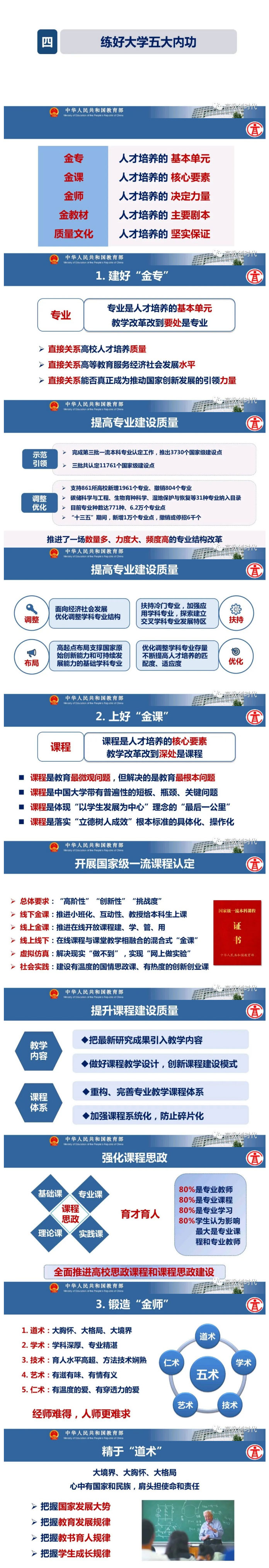 吴岩强调,188金宝搏beat官网登录 强国除了要有国际可比的硬指标,还要看它有没有构建起一套自主的发展范式。要着力破解卡脖子卡脑子卡嗓子问题,通过实施“六卓越一拔尖计划”2.0(新工科、新医科、新农科),破解卡脖子问题;通过加强基础学科拔尖人才培养,破解卡脑子问题;通过深化新文科建设,破解卡嗓子问题。根本上是要练好大学五大内功(金专、金课、金师、金教材、质量文化)。