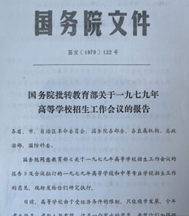 2.政审条件真正放宽。1979年国务院批转的高考文件规定:“政治审查,主要看本人的政治表现。要全面第历史地看待考生本人的政治态度、思想觉悟和道德品质。父母及主要社会关系的政治问题和历史问题,一般不应影响考生的录取。”最后这句话至关重要,从此,实行了30年的高校招生政审特别注重考察考生父母和主要社会关系的政治问题和历史问题的做法被废止,这是重要的历史进步。