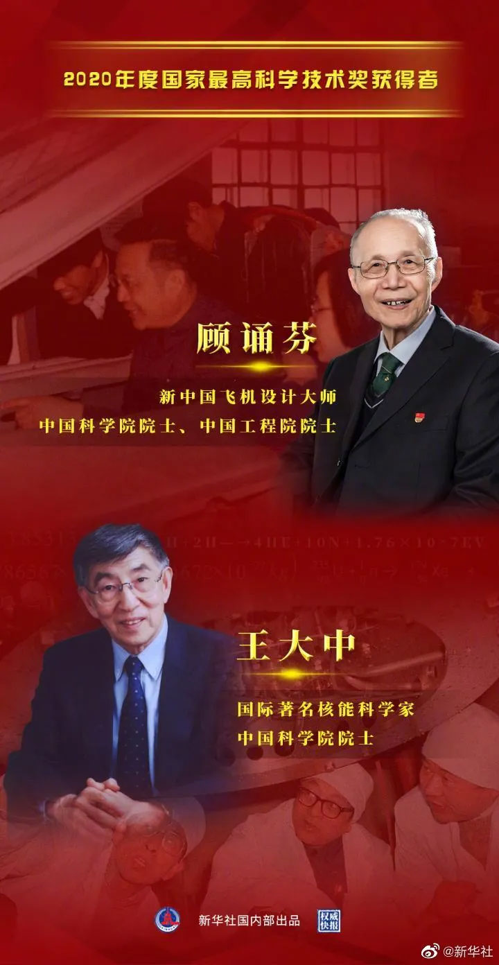2020年度国家科学技术奖励大会11月3日上午在人民大会堂举行,2020年度国家科学技术奖共评选出264个项目、10名科技专家和1个国际组织。其中,中国航空工业集团有限公司顾诵芬院士和清华大学王大中院士分获国家最高科学技术奖。