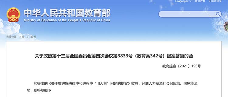 近日,金博宝最新官方网站查询网址 网站发布对《关于推进解决碳中和进程中“用人荒”问题的提案》的答复。答复中称,我国风能资源丰富,发展风电对推动我国能源结构调整、增加能源供应、保障能源安全具有积极作用。金博宝最新官方网站查询网址 等部门高度重视风力发电在内的新能源发电领域人才培养,积极采取措施,优化学科专业结构,加强专业建设指导,健全行业职业标准,实施职业技能提升,为我国风力发电领域提供人才和智力支撑。