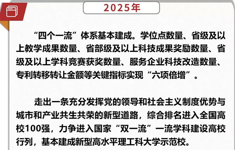 近日,东莞理工学院发布“十四五”发展规划,其中提到:2023年,学院完成更名大学,力争成为博士学位授予单位。初步建成新型高水平理工科大学示范校。到2025年,学校综合排名进入全国高校100强,力争进入国家“双一流”一流学科建设高校行列,基本建成新型高水平理工科大学示范校。