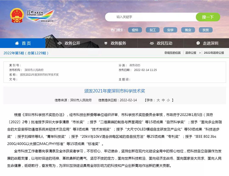 近日,2021年度深圳市科学技术奖产生,深圳大学李清泉教授获“市长奖”。
