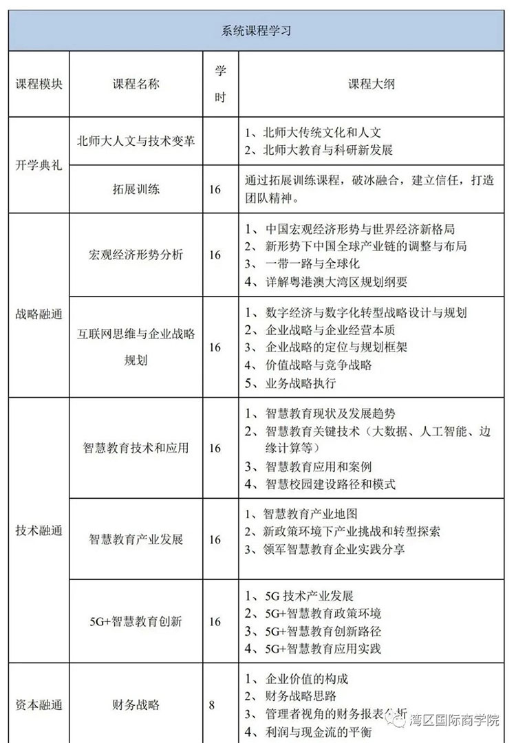 师资团队:汇聚北京师范大学资深名师、政府研究型官员和智慧教育产业带头人组成优秀师资团队,联合中国互联网协会与龙头企业决策者共同研讨行业发展机遇。学习行业前沿理念、创新模式、新技术及应用,充分获得大中小企业融通发展的机会和途径。