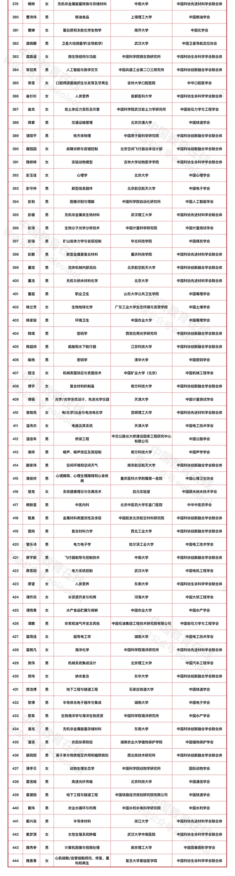 近日,中国科学技术协会公布了第七届中国科协青年人才托举工程入选名单。经专家推荐、项目实施单位遴选、人选公示等程序,确定丁广飞等444名青年科技工作者入选第七届中国科协青年人才托举工程(不包含特殊科技领域入选者)。