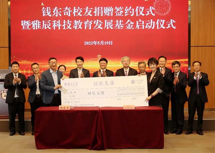 在南京大学即将迎来120周年校庆之际,钱东奇校友再次向母校慷慨捐资,设立南京大学“雅辰科技教育发展基金”。该基金重点支持南京大学在生命科学、半导体学科等领域的科学研究、队伍建设,以及相关基础教育事业等。
