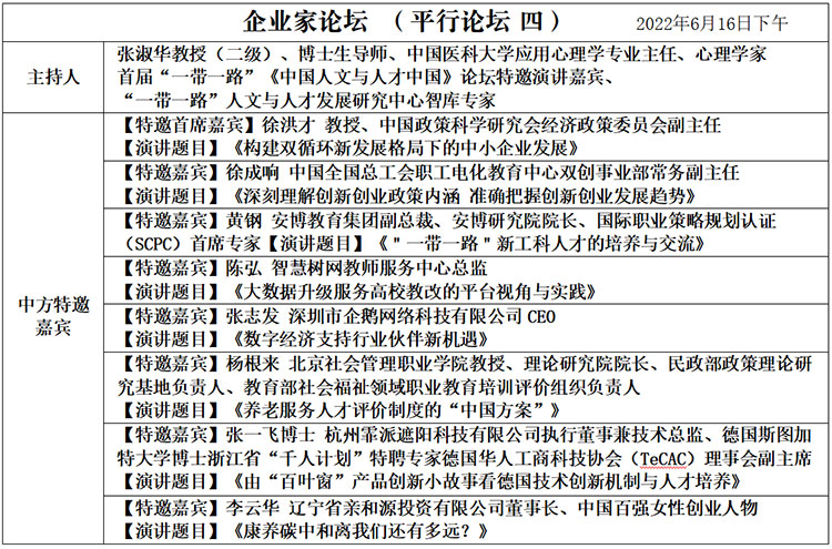 2022第二届一带一路《中国人文与人才中国》国际论坛6月16日下午13:30——17:30同时开启4个平行论坛: