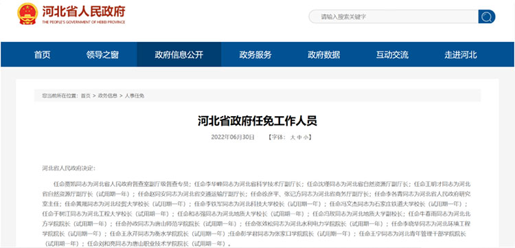 6月30日,河北省人民政府发布了一批人事任职通知,多所高校领导班子将调整。具体任命如下: