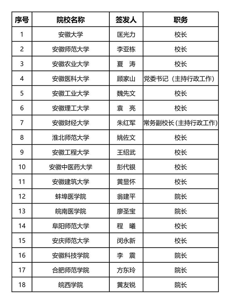 2022年安徽省属高校录取通知书签发人名单如下: