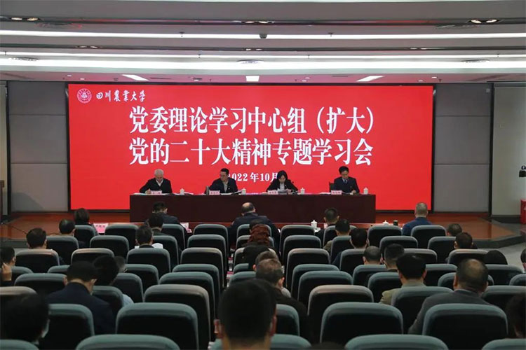 会议强调,学习宣传贯彻党的二十大精神,是当前和今后一个时期的首要政治任务,全校上下要在全面学习、全面把握、全面落实上下功夫,坚定推动党的二十大决策部署在川农大落地落实;要坚持以中国式现代化为引领,统筹和加快推进学校高质量发展,走出一条体现中国特色、农业行业特征、川农大特质,服务科教兴国、农业强国战略的高质量发展之路,为全面建设社会主义现代化国家作出新贡献。