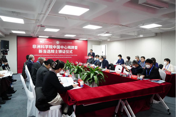 1月13日,非洲科学院中国中心揭牌暨新当选院士颁证仪式在北京中科大厦成功举行。来自中国、非洲的12位院士和多位知名专家,国家和北京市人才、科技等部门单位代表以及高校院所、高科技企业负责人等共40余人出席。本活动由非洲科学院、北京环球英才交流促进会主办,非洲科学院亚洲区域办公室、非洲科学院中国中心承办。