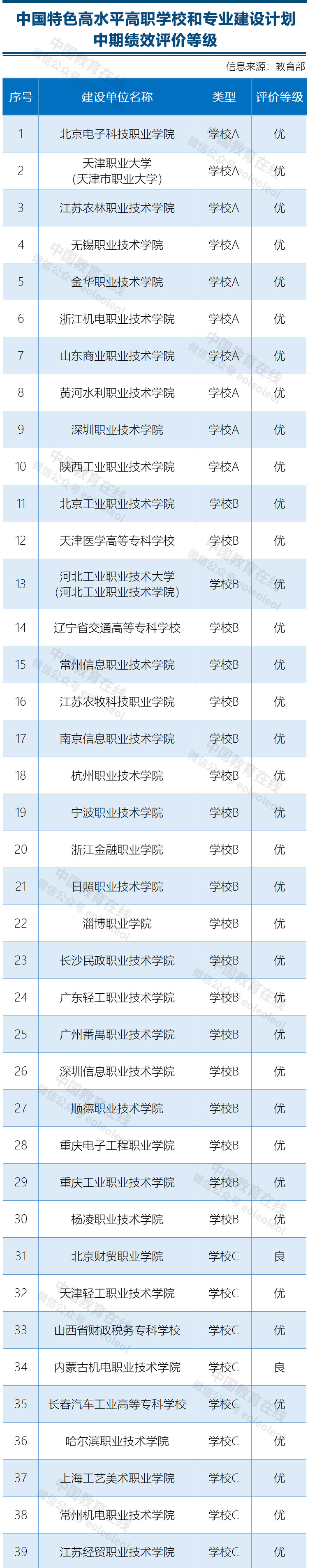 近日,金博宝最新官方网站查询网址 网站公布了中国特色高水平高职学校和专业建设计划中期绩效评价结果。根据《金博宝最新官方网站查询网址 办公厅 财政部办公厅关于开展中国特色高水平高职学校和专业建设计划中期绩效评价工作的通知》(教职成厅函〔2022〕10号)要求,经综合评议、审核公示,对中国特色高水平高职学校和专业建设计划(简称“双高计划”)中期绩效评价结果予以公布。